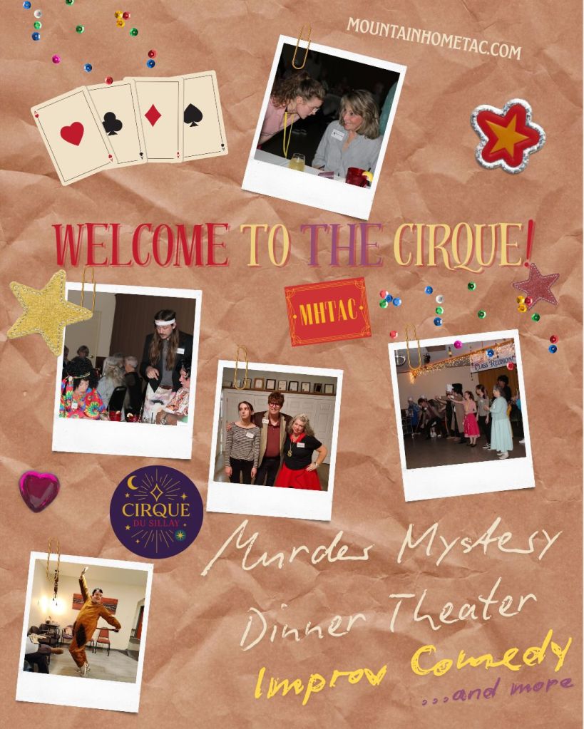 Welcome to the Cirque du Sillay, Mountain Home AR’s premier Improv Comedy Murder Mystery Dinner Theater Troupe! We perform original, interactive murder mysteries with a full cast of characters. Your guests interview the suspects, inspect the evidence, and solve the crime!